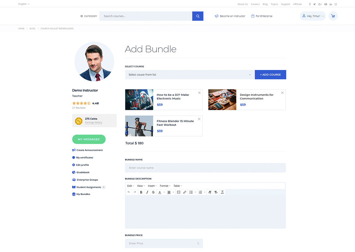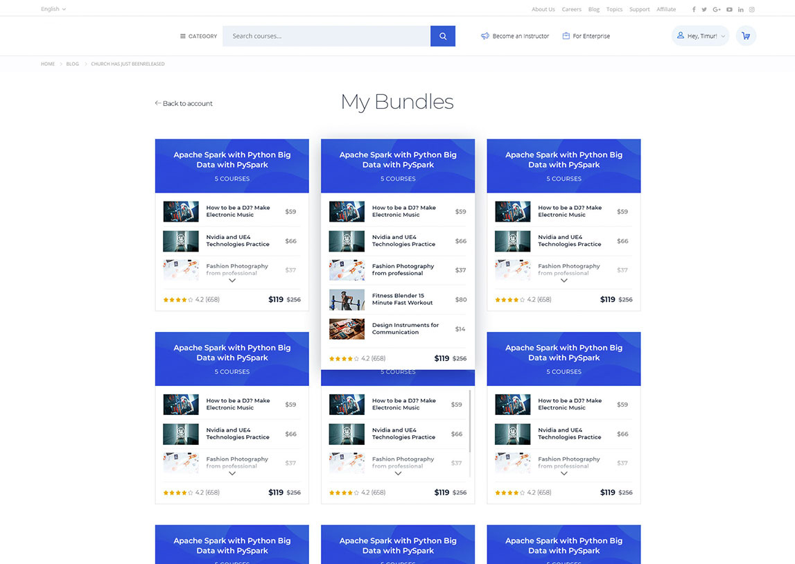 Course Bundles feature increases efficiency and reduces marketing costs. Instead of promoting 5 courses separately, you can market them as one course bundle and one solution for different studing purposes.
