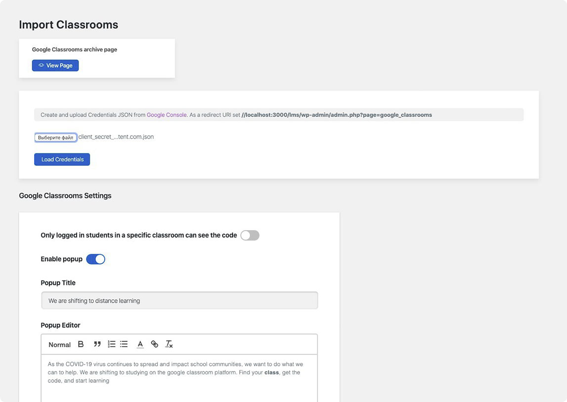 This feature allows you to import your classes from Google account to your online eLearning Platform and manage your work remotely. This will help to structure and organize the process of distance learning and sharing of materials between teachers and students. With its help, every student will be able to enter directly to his class. Such a simple integration allows you to avoid possible mix-ups and make the transition to online smooth and easy.